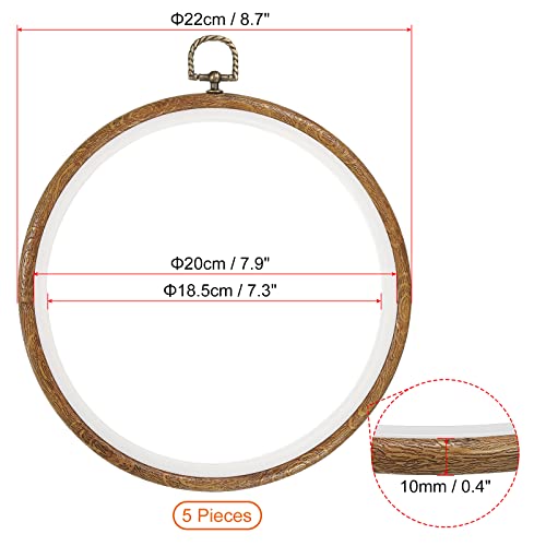 PATIKIL 5 Pieces 8 Inch Embroidery Hoops Frame Round Imitated Wood Circle Cross Stitch Hoop Ring for Embroidery Art Craft Handy Sewing Decoration