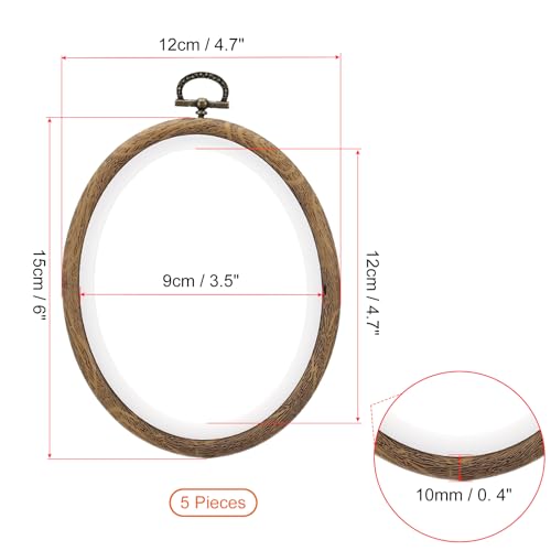 PATIKIL 6×4.7inch Embroidery Hoops, 5Pieces Imitated Wood Oval Frame Cross Stitch Hoop Ring for Embroidery Art Craft Sewing Ornaments Hanging Decoration