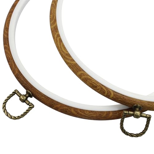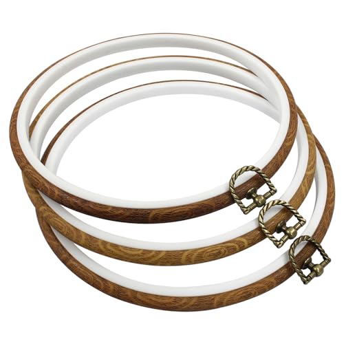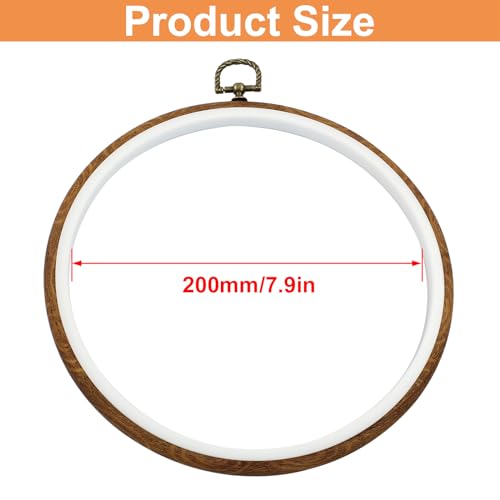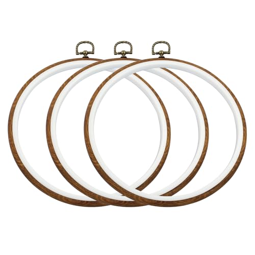 Waziaqoc 8 Inch Embroidery Hoop Frame Set, Round Circle Imitated Wood Display Frame, Cross Stitch Hoops for Art Craft Sewing and Hanging (3 Pcs)