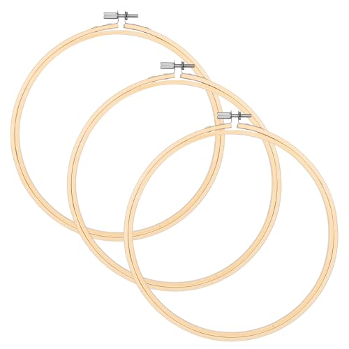 YBEATY 3 Pcs Embroidery Hoops Bamboo Frame Circle Cross Stitch Hoop Ring Adjustable Embroidery Hoops Set Art Craft Handy Sewing Hand Quilting for Home Ornaments (8 inch/ 20cm)