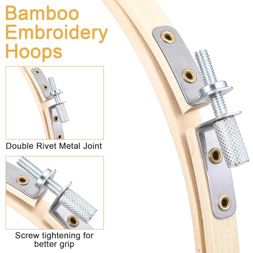 YBEATY 3 Pcs Embroidery Hoops Bamboo Frame Circle Cross Stitch Hoop Ring Adjustable Embroidery Hoops Set Art Craft Handy Sewing Hand Quilting for Home Ornaments (7.9 inch/ 20cm)