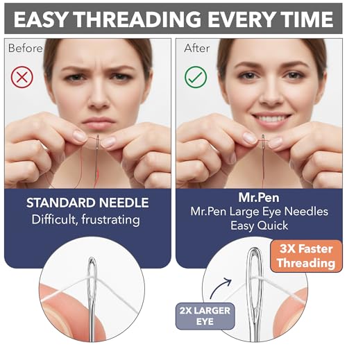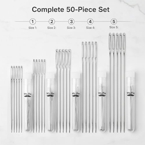 Mr. Pen- Large Eye Needles for Hand Sewing, 50 pcs, 5 Sizes, Silver, Embroidery Needles for Hand Sewing