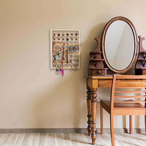HAITRAL 48-Spool Sewing Thread Rack, Wall-Mounted Thread Holder with Hanging Hooks, Wooden Organizer for Quilting, Jewelry, Embroidery