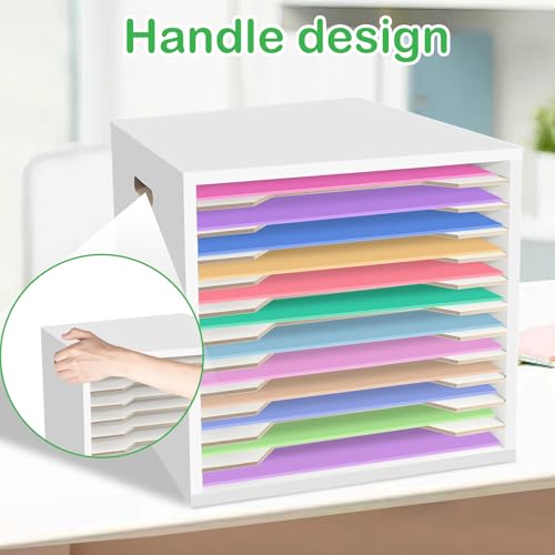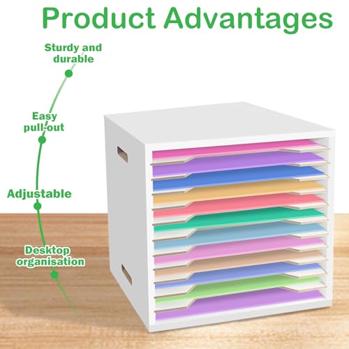 Versatility: With 12 tiers of storage and each 1.8 inches height, Use the paper storage organizer to efficiently organize supplies, documents, construction paper ,scrapbooking paper, printing paper, adhesive craft paper, file folder, magazines, calculators, notebooks etc.