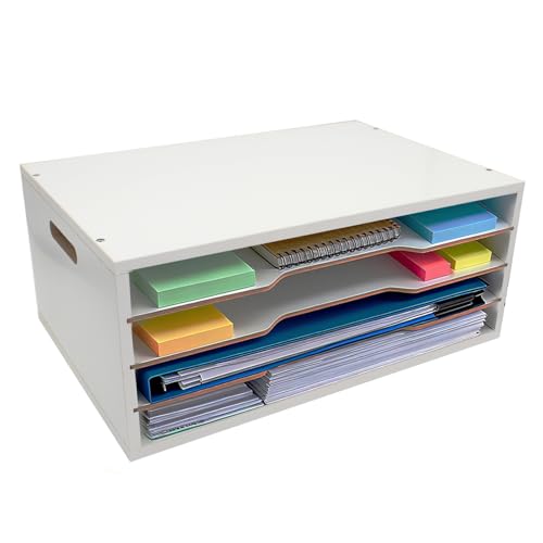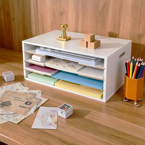 Versatility: With 4 tiers of storage and each 1.8 inches height, Use the paper storage organizer to efficiently organize supplies, documents, construction paper ,scrapbooking paper, printing paper, adhesive craft paper, file folder, magazines, calculators, notebooks etc.