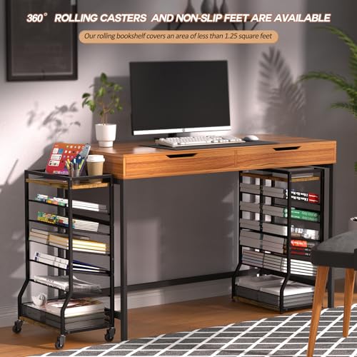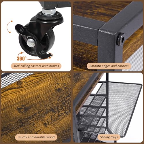 7 Tier Rolling File Cart with Sliding Trays, Wood Metal File Organizer Beside Desk, Free-Standing File Holder, Paper Letter Tray Organizer Mesh Desk Organizer for Home Office School (Patent)
