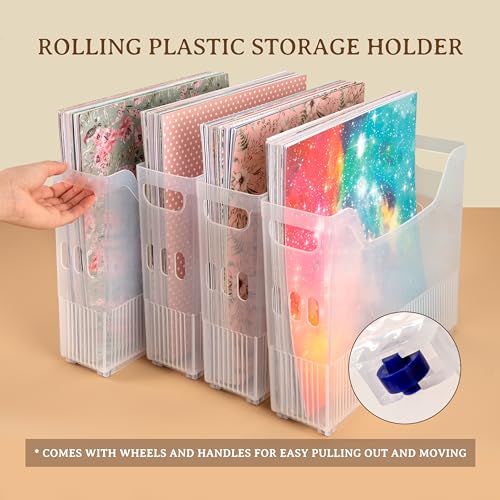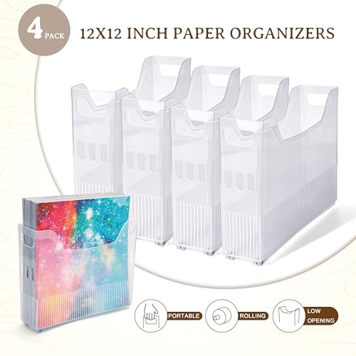 Caydo 4 Pack Scrapbook Paper Storage with Wheels, Plastic Scrapbook Storage Bin for Holding 12″ x 12″ Papers, Scrapbook Papers, Vinyl Sheets, Cardstocks