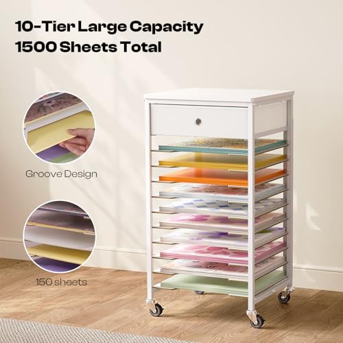 Holds 1500 Sheets of Scrapbook Paper: This 10-tier paper organizer is specifically designed for 12″x12″ paper, allowing you to organize by color, size, or theme. The entire structure keeps paper visible and accessible, so you can find what you need in seconds—great for scrapbooking, card making, and all your creative projects