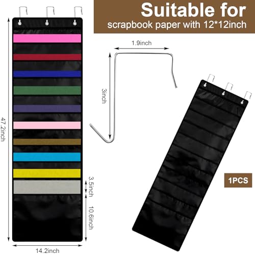Henoyso 2 Pcs 12 x 12 Inch Paper Storage Scrapbook Vinyl Roll Storage Organizer Hanging Wall File Organizer with Door Hangers for Office Cardstock Craft (Black)