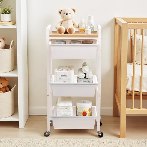 【Multi-purpose Usage】: The metal rolling cart can help you organize and store snacks, kitchen supplies, bathroom supplies, office supplies, miscellaneous items, books, toys, stationery, arts and crafts materials, and beauty products. Perfect for the kitchen, office, bedroom, living room, pantry, studio, classroom and more. Help you add extra storage space and organize good products in separate categories.