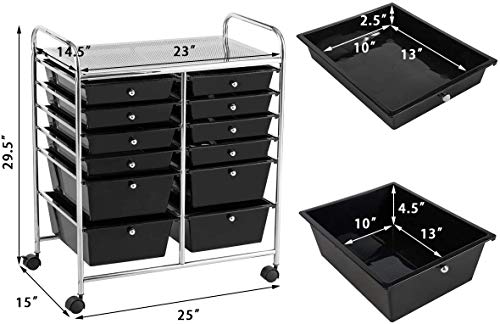Giantex 12 Drawer Rolling Storage Cart Tools Scrapbook Paper Office School Organizer (Black)