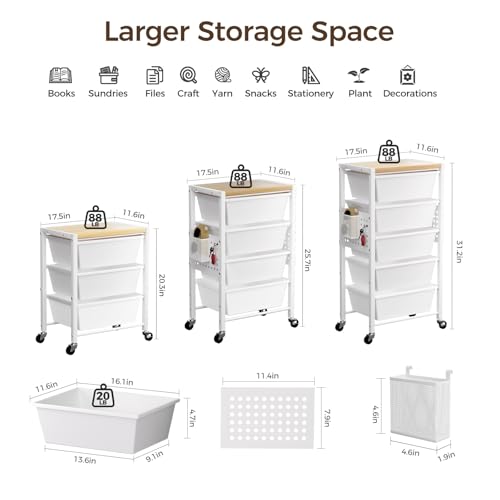 【Sturdy and Durable】: The frame of the drawer storage cart is made of high-quality metal, waterproof and rustproof, strong and stable; The drawer features high-quality PP material drawers that outlast the competition, which can hold up to 20 pounds; the cart tabletop is made of natural wood, which can hold up to 88 pounds. Meanwhile, each drawer is equipped with smooth slides, easy to pull out and push in.