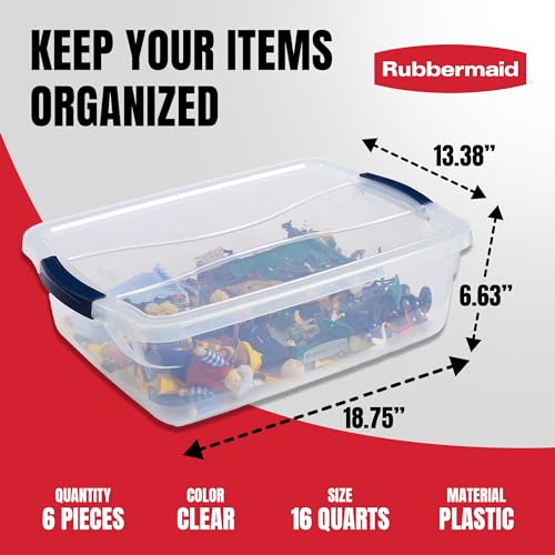 Rubbermaid Cleverstore 16 Qt Clear Storage Bins with Lids, 6-Pack, Stackable, BPA-Free, Made in USA