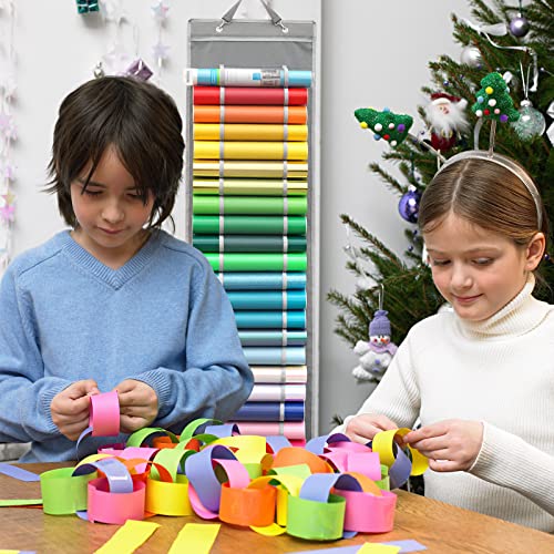 Hanging Vinyl Organizer, Double-Sided, ZENXUS 25 Compartments Roll Storage, Backside 10 Pockets for 12×12 Vinyl Sheet, Cardstock, Scrapbook Paper, Door Hooks Included