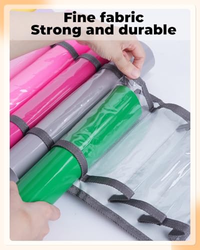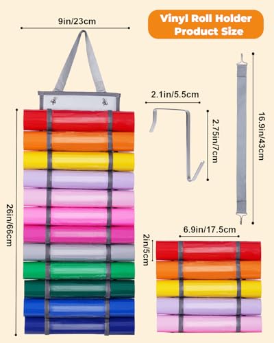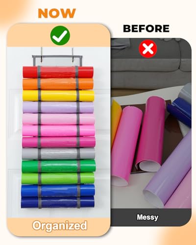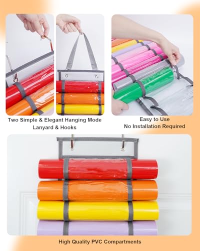 EASY TO USE:There is no need to punch and assemble, just hang vinyl organizer with the hooks or straps. Each vinyl roll storage compartments compatible with Cricut accessories storage is independent, which is convenient for loading and unloading without affecting other compartments