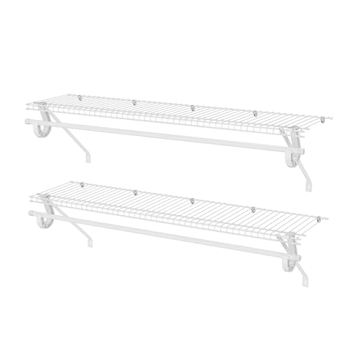Closet Shelves Wall Mounted with Hanging Rod, 2 Pack 4 ft x 12 in White Wire Shelving Kit, Metal Wall Shelf Organizer for Home, Pantry, Laundry Room Storage