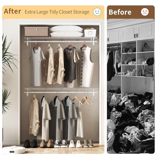 Space-Saving & Easy Installation: Maximize your living space with the wire closet shelf. This flexible system allows for easy installation and can be mounted on walls or used as a freestanding rack. Its space-saving design helps to organize your home efficiently, making hanging closet shelves perfect for small apartments or homes with limited storage