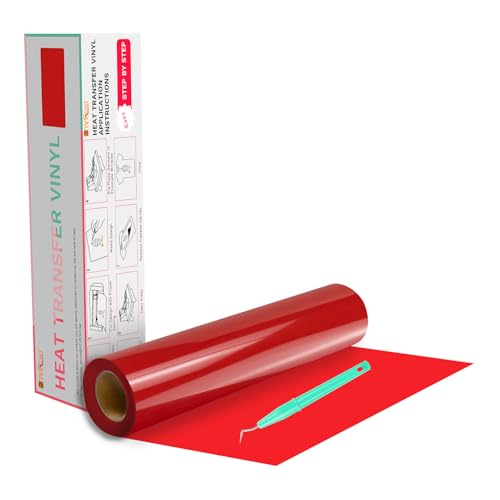 HTVRONT HTV Vinyl Rolls Heat Transfer Vinyl – 12″ x 20ft Red HTV Vinyl for Shirts, Iron on for All Cutting Machines – Easy to Cut & Weed for Heat Transfer Design (Red)